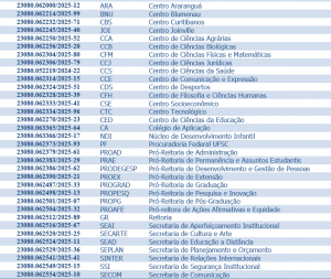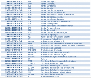 Na Tabela abaixo constam os números dos Processos Digitais cadastrados para cada Unidade, que serão tramitados aos respectivos Agentes Patrimoniais Natos.